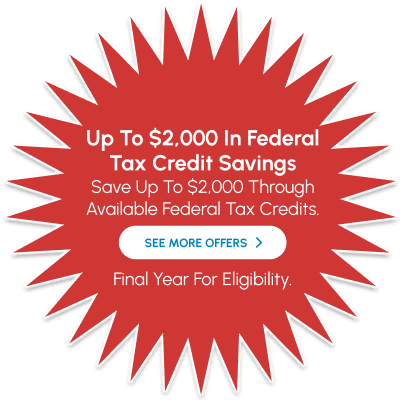 Save up to $2,000 through available federal tax credits. Redeem Offer Expires 12/31/2025 Final year for eligibility.$550 OFF
